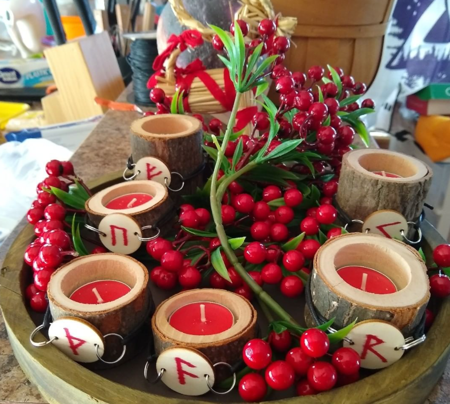 This year, I decided to make a Väntljusstaken / Sunwait Candles arrangement for the Yule Holiday. Yes, I am already a few weeks late, but I plan to do a few weeks all at once this upcoming weekend. I think it turned out pretty good 🙂