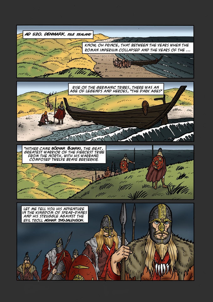 Wife of Freyr was based on “Ögmundar’s death and Gunnar’s half”, and as you stated on Kickstarter “Bödvar Bjarki is based on an Old Norse Poem “Bjarkamál”, an Icelandic rhyme “Bjarkarimur” and Hrólfr Kraki’s saga.” You are one of the few writers I’ve seen dipping into Saga material for comics, how did you decide on that?